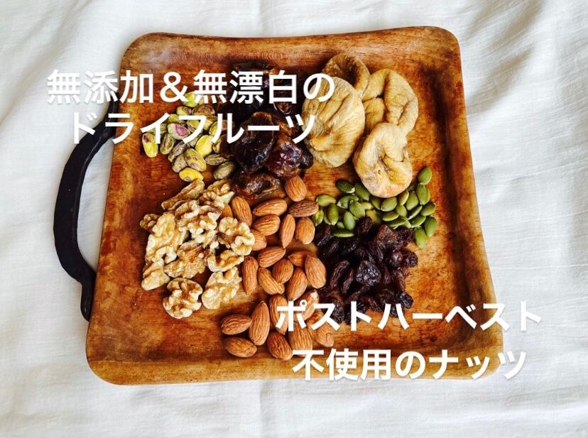 2 , 無添加無漂白でポストハーベスト不使用のナッツやドライフルーツを使用します。